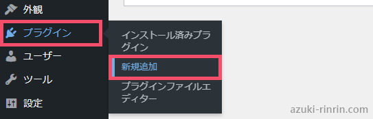 WordPress管理画面より[プラグイン>新規追加]を選択してください。