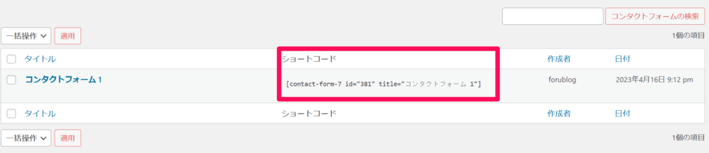 ⑥設定はデフォルトの「コンタクトフォーム1」でOKです。