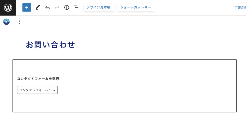 ①WordPressの管理画面の「お問い合わせ」をクリックし、コンタクトフォームの設定画面を開きます。