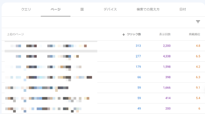 このページタブを使って、閲覧者があなたのどの記事に興味があるかがわかります。興味がある記事は閲覧数を増やしていくチャンスでもありますので、記事の投稿数を増やす検討に使えます。
