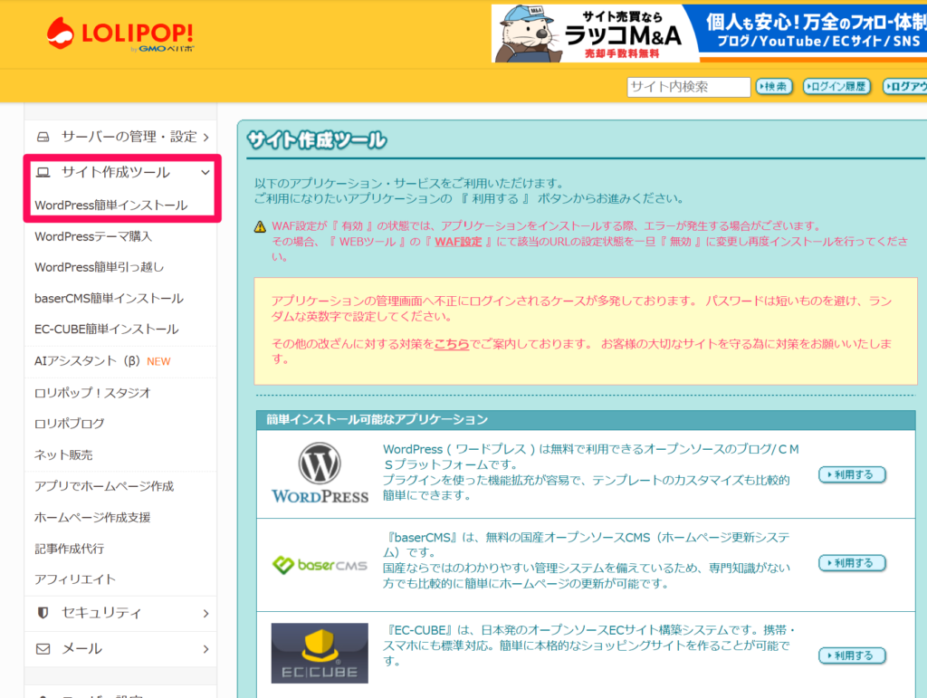 ロリポップと契約していると、WordPressのインストールはとても簡単にできます。